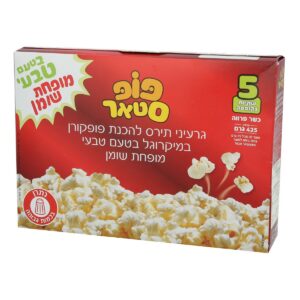 פופקורן להכנה במיקרוגל בטעם טבעי מופחת שומן 5 יח'